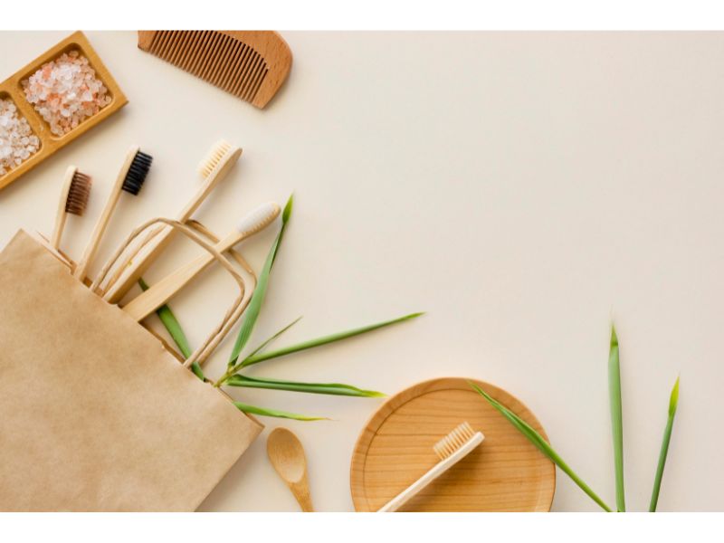 - Bamboo toothbrushes and biodegradable cotton swabs